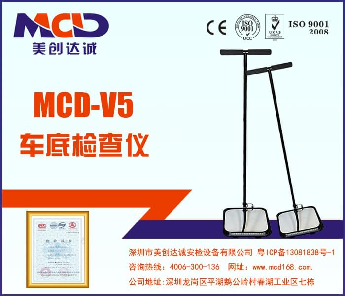 MCD-V5是美創達誠安檢設備有限公司推出的一款非常受歡迎的車底安全檢查鏡,30CM超大方形凸面鏡,大功率高亮白光LED燈,可充電電池。經濟便攜,簡單明了,帶三個支撐活動的輪子,推動輕便,桿子活動范圍大,適用于不同角度的空間,是一款被廣泛應用于檢查車子、桌子、凳子等底部是否有異常的安檢工具。