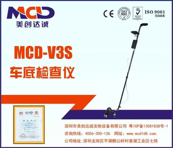 MCD-V3系列是美創達誠安檢設備公司推出的一個比較成 熟的車底檢查鏡系列,尤其是MCD-V3D與MCD-V3S等可視車底檢查儀,更是美創達誠在車底檢查設備設計上一次大膽的突破,打破了單一的凸面鏡車底 檢查儀的行情,為車底檢查帶來了更多有創意的產品。MCD-V3S把車底檢查鏡的鏡子,替換成了一個攝像頭,并配備的5.0英寸液晶顯示屏,顯示器采用色素 265萬色TFT數字屏。獨家開發驅動板,具有使圖像左右轉換和5倍電子變光等強大功能。使您的畫面更逼真色彩更鮮艷。攝像頭采用CMOS傳感器,高亮白 光LED補光源,使您即使在黑夜也能正常使用。采用三節伸縮式拉桿,使您在人眼無法看到的地方和人身無法進去的地方,都能清晰地看到視頻圖像。
