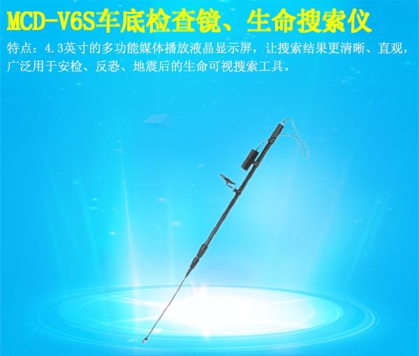 MCD-V6S是美創達誠安檢設備最新研發的一款視頻生命探測儀,攝像頭采用可卷曲的伸縮式軟管結構,可任意角度調節3.6mm廣角鏡頭,攜帶方便。采用7寸的多功能媒體播放液晶顯示屏,讓搜索結果更清晰、直觀。是一款廣泛用于安檢、反恐、地震后的生命可視搜索工具。攝像頭自帶有紅外補光,可用于暗處或夜間使用,輕便式伸縮管,可單手操作檢查高處、車子、桌子、凳子底部或集裝箱等高處特殊場合是否有異常。