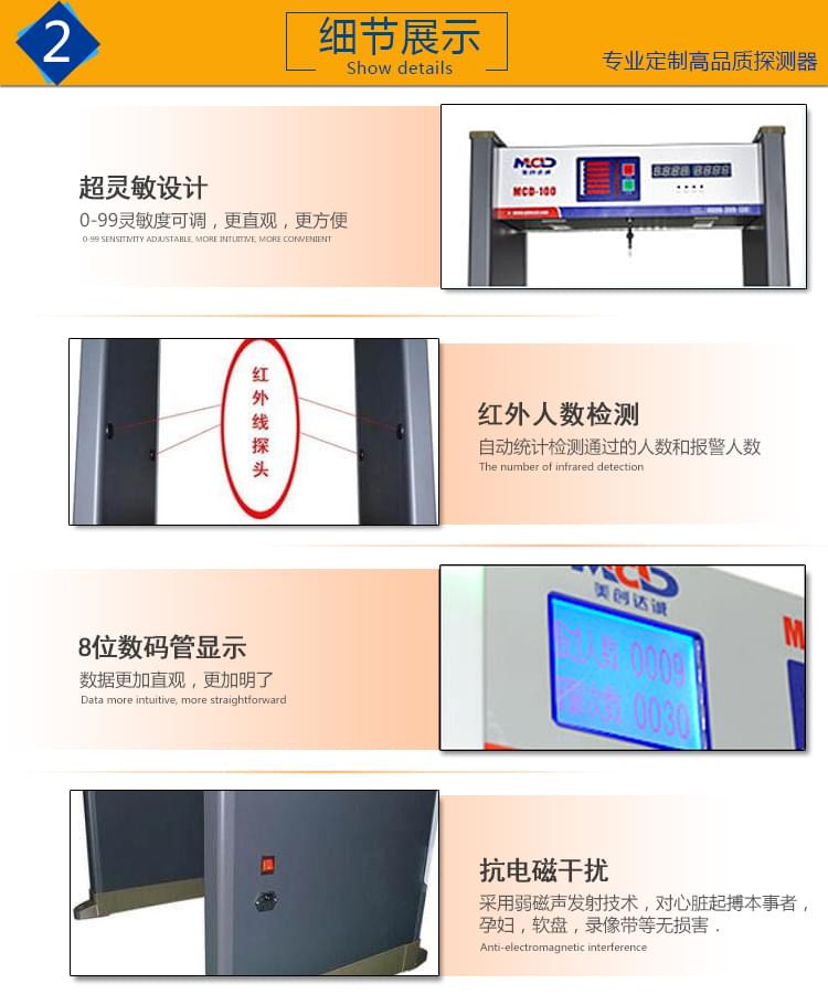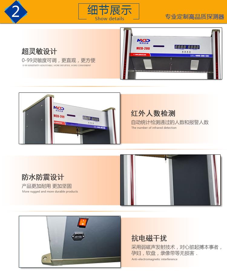 最近看見很多人在百度搜索安檢門圖片,看了很多也沒有一個系統的介紹安檢門的參數圖、整機圖以及細節圖,美創達誠提供詳細的安檢門圖片供消費者參考!如下: