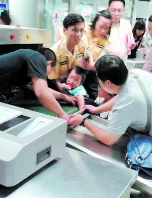 乘坐地鐵國安檢時常有的事,而在這兒的過程中常常看到孩子玩耍用手觸碰安檢機,而很多家長卻沒注意。曾有人對這種情況進行實驗。