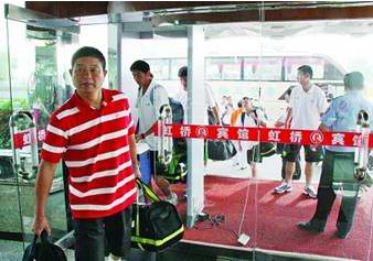 進入運動員賓館駐地必須要過安檢門,還要經過安保部門的金屬探測儀,參加全運會泰安賽區男子足球比賽的北京代表隊隊員從火車站乘車抵達運動員駐地虹橋賓館。武警官兵正在駐地門前站崗,進入駐地的車輛及人員都要經過檢查,進入人員必須攜帶專門的證件,進入駐地的車輛也必須要有組委會發的專用車牌。賓館大廳門口已經安裝了安檢門,兩名安保人員手持金屬探測儀對進入賓館的人員進行檢測。安保人員稱,每一個進入賓館的人都要經過安檢門,并用金屬探測儀進行檢測,如果有人身上攜帶危險物品,安檢門以及金屬探測儀會發出報警信號。