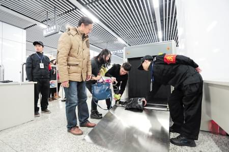 日前,首批13臺安檢機機在長沙地鐵2號線的長沙火車站、長沙火車南站、萬家麗廣場、五一廣場、望城坡等5個車站投入使用。隨后,包括31臺X光安檢機在內的第二批安檢設備,將陸續(xù)進入長沙地鐵2號線另外14個車站,并力爭在2015年1月底前投入使用。屆時,長沙地鐵2號線的19個車站都將有大型安檢機器“把守”。